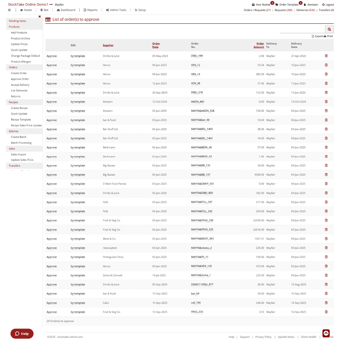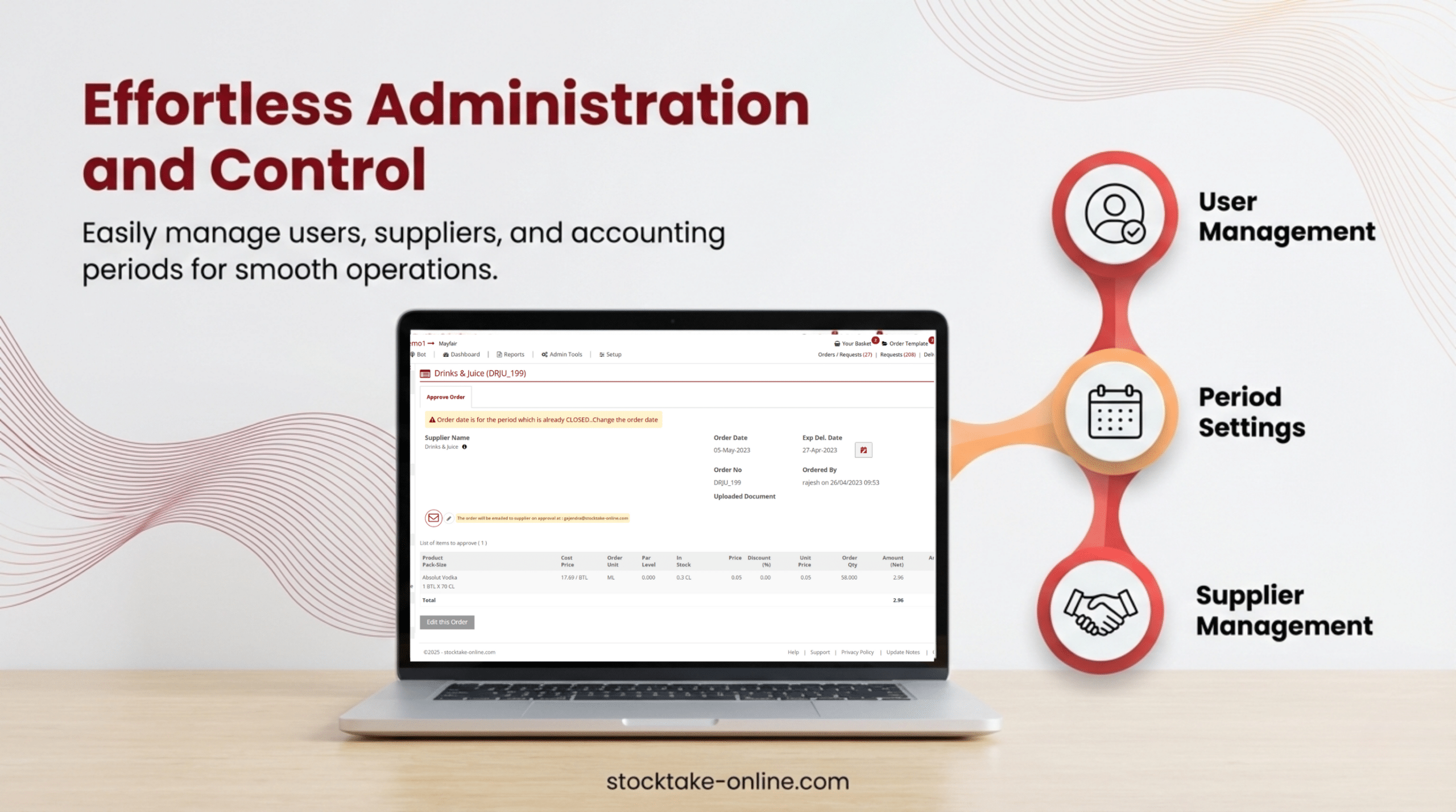 ستوك تيك أونلاين (StockTake Online) هو منصة متكاملة للتحكم في المخزون وإدارة المستودعات مصممة خصيصًا للمطاعم، المقاهي، المخابز، مطاعم الخدمة السريعة، والمطابخ السحابية. من خلال تبسيط عمليات الشراء، حساب تكلفة الوصفات، إدارة الموردين، والتقارير، تمكّن STO منشآت الضيافة من تقليل الهدر، تحسين اتخاذ القرار، وزيادة الربحية.