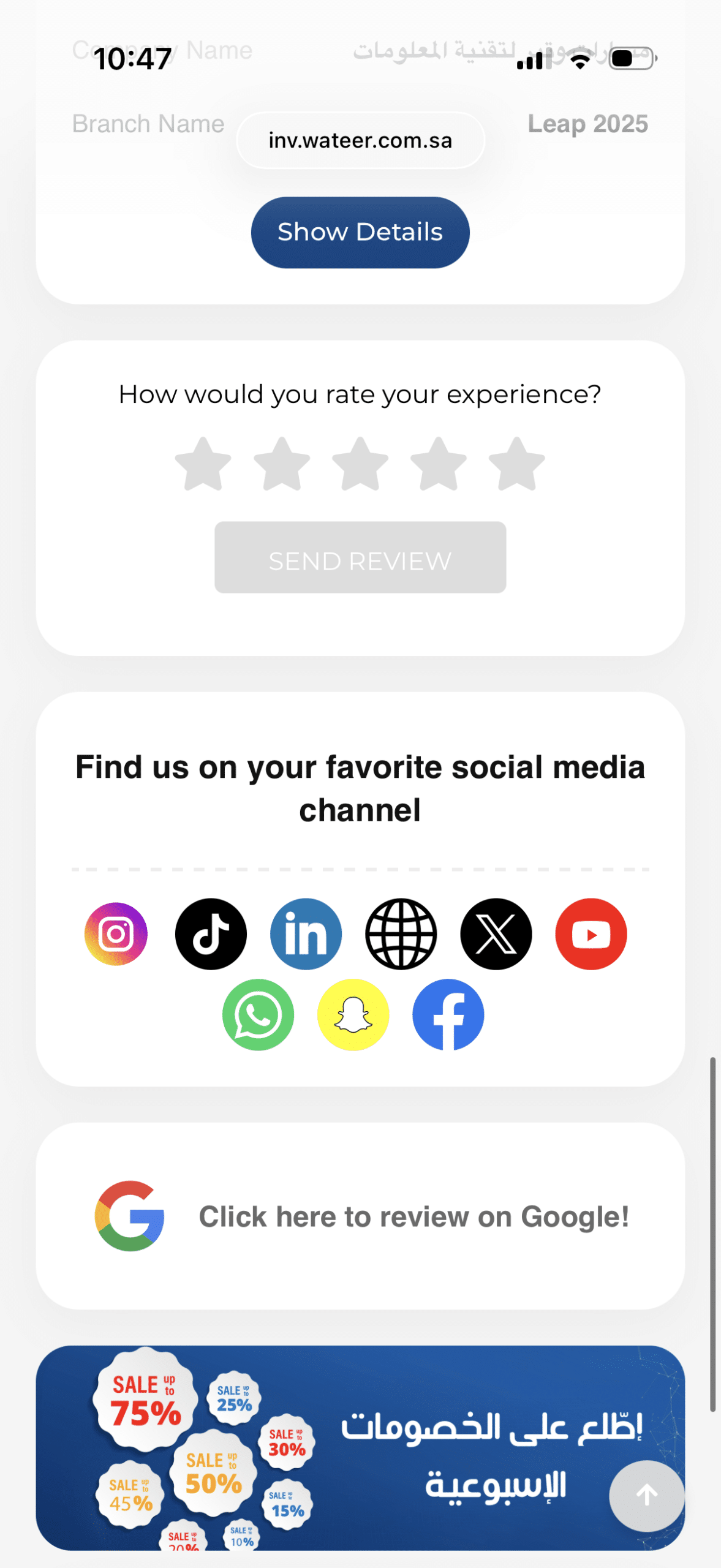 - تشجيع العملاء على تقييم المتجر في خرائط Google داخل الفاتورة