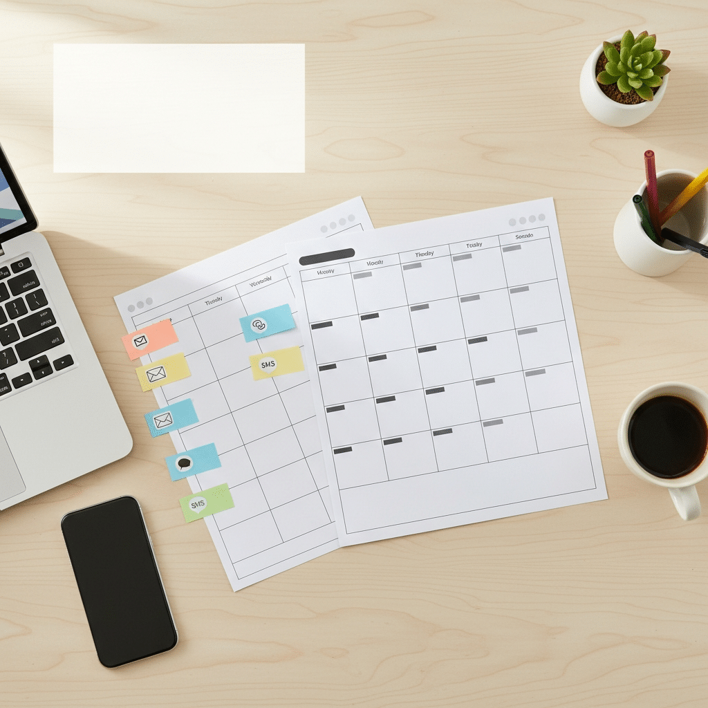في منتصف الأسبوع، تُرسل الرسائل النصية القصيرة الخاصة بالعروض ذات الأجل المحدود أو التذكير بالعروض الموسمية. وتُخصص نهاية الأسبوع للمراجعة وتحليل النتائج وتعديل المحتوى بناءً على الأداء الفعلي.