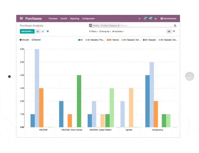 - Optimize purchasing workflows by automating vendor bill generation and linking purchases to accounting.